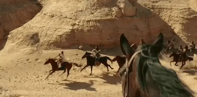 用实景进行拍摄所带来的那种震撼之感,是依靠棚拍以及特效所全然无法比拟的,大漠里孤烟所呈现出的孤寂氛围,也致使整体的那种氛围变得愈发肃杀了。