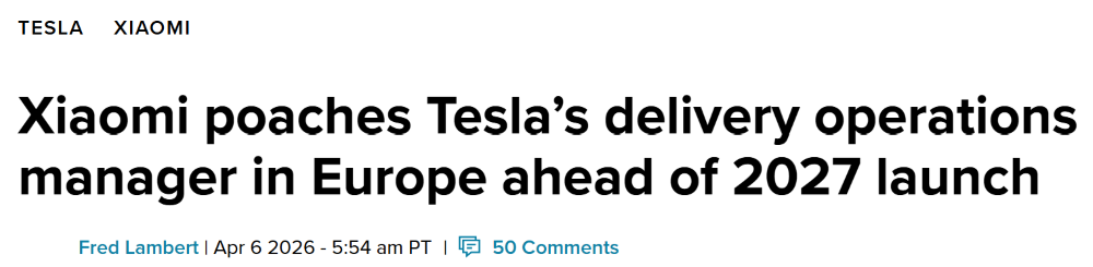 同时,根据洛伦茨个人社交媒体账号下的评论,至少还有另一位特斯拉欧洲前运营人员也已加入小米,这表明小米正在有针对性地招募特斯拉在欧洲的物流专业人才。